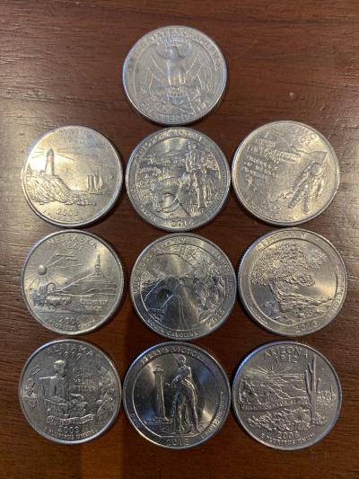 グアム、サイパン、西海岸、ハワイとアメリカへは何度も観光、ビジネスで行きましたが、今回25セントコインにデザインがあることを初めて知りました。最初はゲームセンターなどのコインかなと思い、ホテルのフロントスタッフに聞くと米国50集+ミクロネシアなど56種類あるとのこと。今回は13種類集まったのでこれからも集めてみようと思ってます。