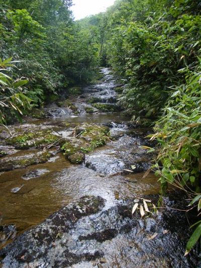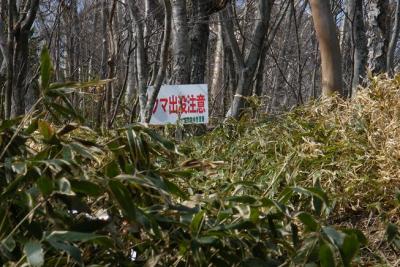 ところでここからの登山道は、この時期クマが多いのかも。注意を促す看板がいくつもあります。このルートを使う登山者が少ないこともあるでしょう。で、私も雄叫びを上げながら逃げていく黒い大きな動物を見ました。遠かったので「たぶん」ですがクマです。