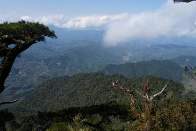 登山口からはよく整備された道が続きます。しかし途中から傾斜が急になり、岩場が現れ、梯子や鎖、ロープが付けられた険しいルートを登ります。足元はしっかりした靴が良いでしょう。やがて第一峰に着きます。見晴らしはいいです。そこから一旦下って最高峰の第二峰に向かいます。この間の道は比較的歩きやすいです。この辺りは海南島固有のハイナンムシクイをはじめ、色々な小鳥がいたりして、鳥好きの私には楽しいところです。