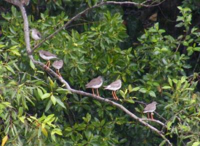 シンガポール最終日は朝から不安定な天気で、湿地公園に着いてからはほとんど雨でした。傘を差しての野鳥観察…? と思っていましたが、屋根がある観察小屋や待避所があって、そこからでも充分野鳥観察ができます。雨ではやはり野鳥の動きは鈍いですが、やや雨が弱まったりした時には意外にもタカ類が飛んだりします。干潟では雨でも関係なくシギやサギなどが餌を採っています。観察小屋間は傘を差しての移動になりましたが、思いのほかたくさんの鳥を観察できました。ただし、蚊が多いので注意が必要です。