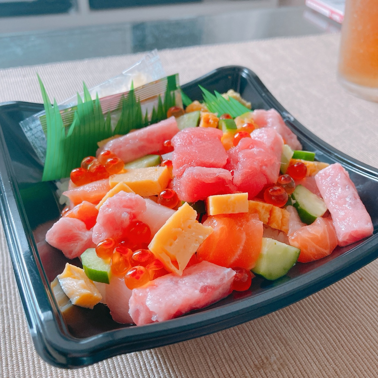 立ち食いスペースと、テイクアウト弁当の販売をしています。ランチは580円の丼と、680円のにぎりセットがメインで売られています。握りセットと、バラチラシを購入しましたが、どちらもコスパばっちりでした。穴子とバラチラシが人気のようでした。
