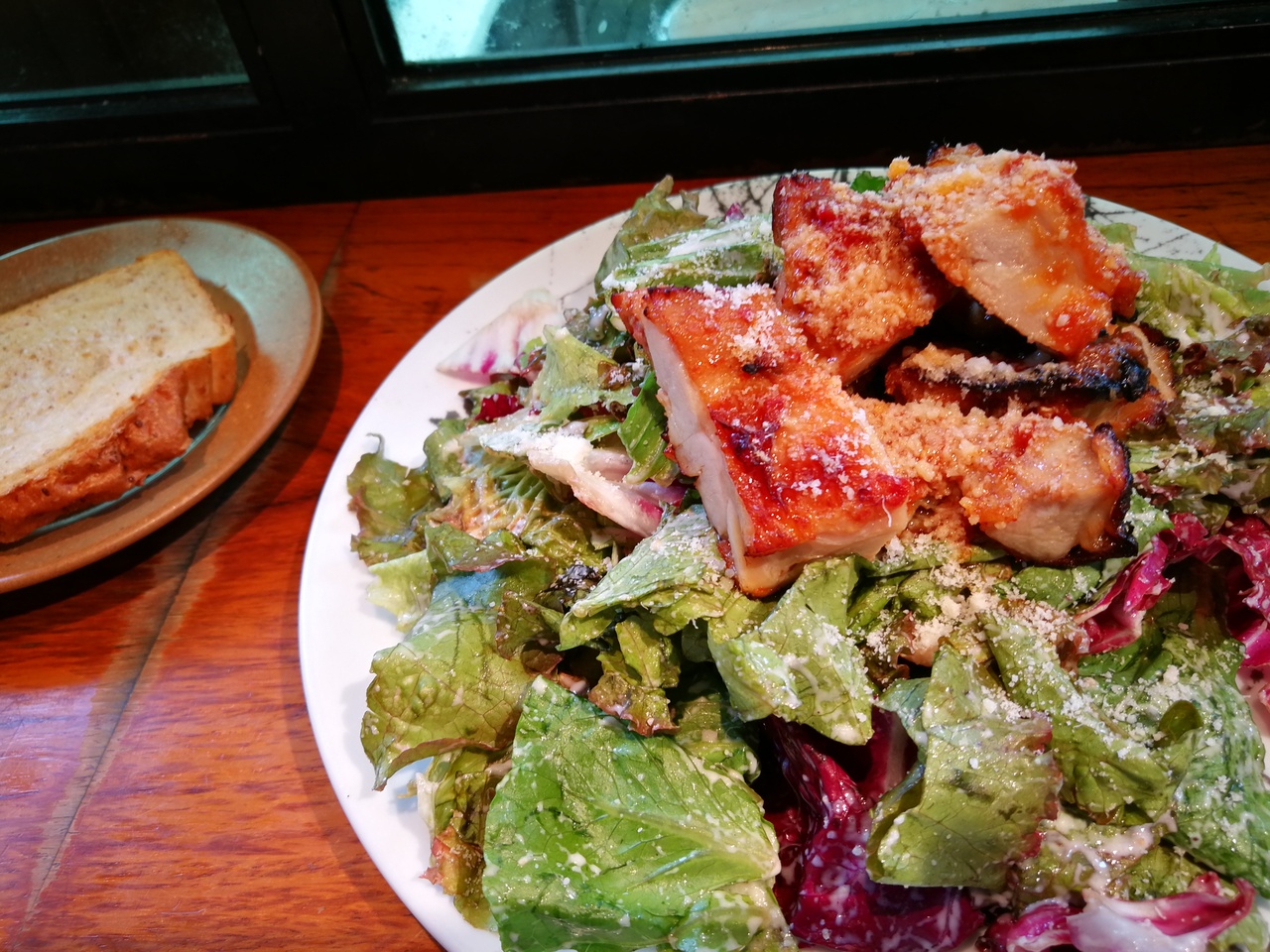 スパイシーチキンのサラダを頼みましたが、ボリュームたっぷりでした。味は濃いです。- 旅行時期