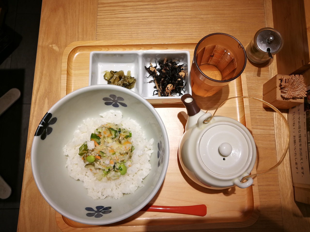 朝食メニューは4つで、きざみ菜のだし茶漬け500円にしました。