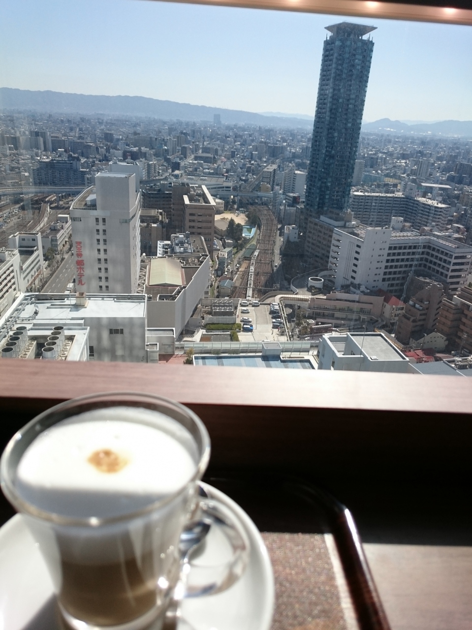 おいしいコーヒーを見晴らしのよい席で飲みました。南大阪の街を一望できます。