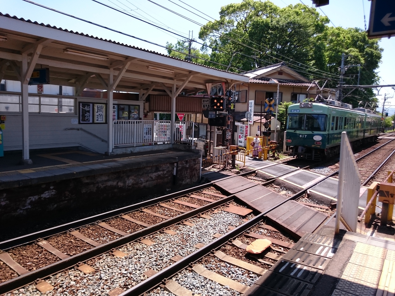 近鉄電車とJRが駅を発着するのがよく見えて、鉄道模型のようです。