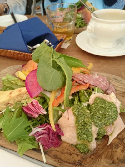 野菜とキッシュや蒸し鶏のプレートを頼みました。スープとピザ食べ放題がついて1280円でした。