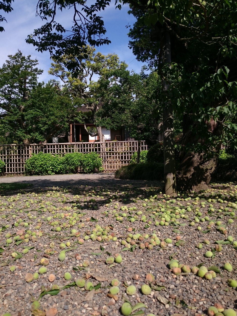 梅は花もないのにいい香りで、何だろうと思ったら、たくさんの梅の実が落ちてほんのり甘酸っぱい香りを出していたのでした。