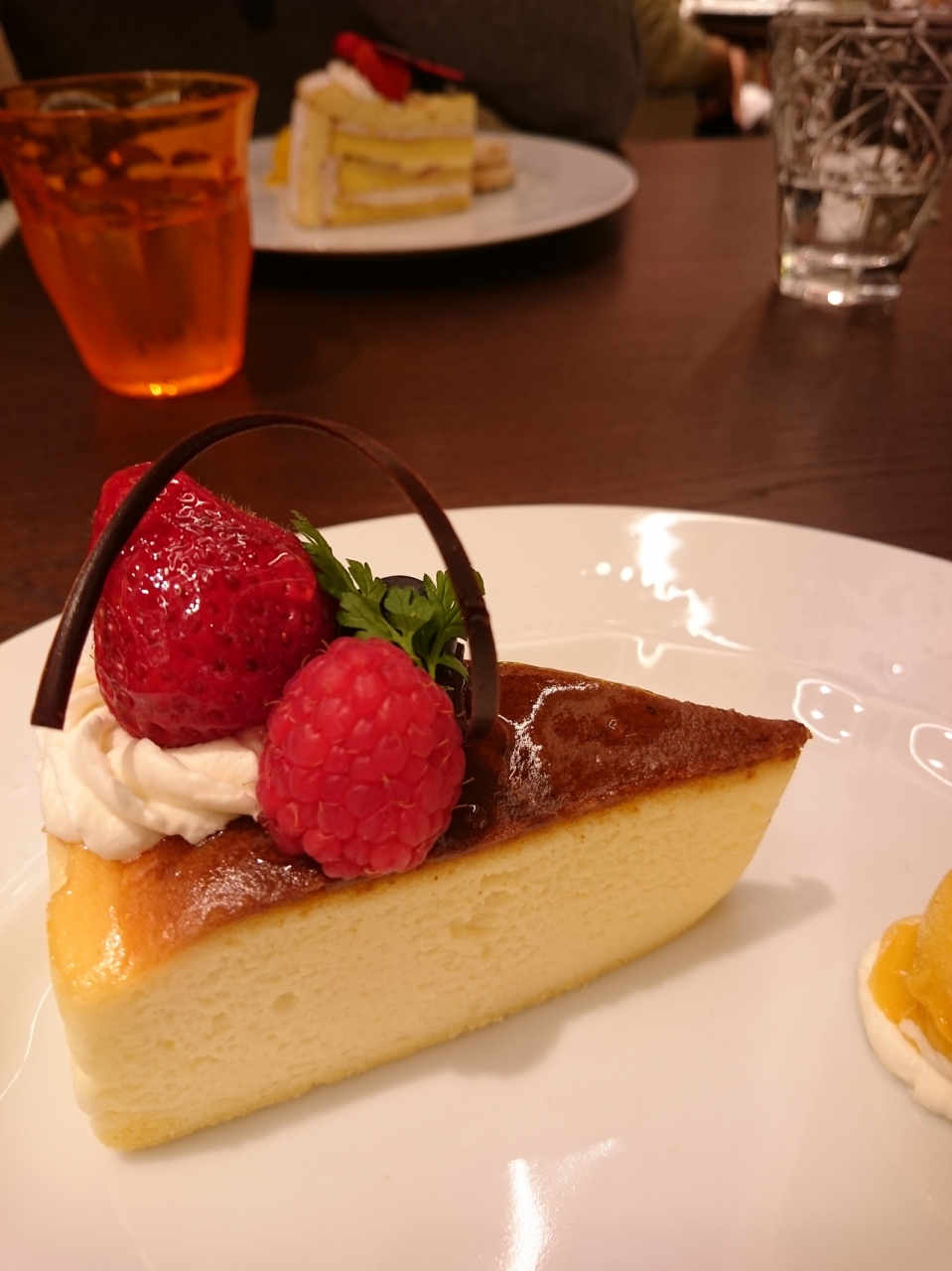 ケーキセットを注文。チーズケーキ、ふわふわでおいしかった。アイスティーもちゃんと葉っぱで入れたいい香り。