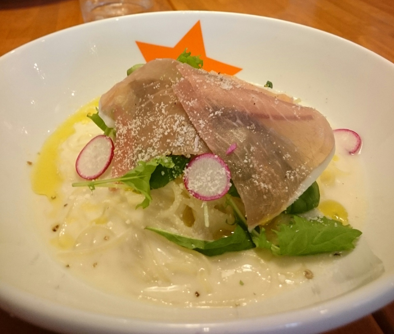 夏なのでビシソワーズのスープパスタにしました。まぁまぁおいしかったけど、最後はちょっと飽きたかな。