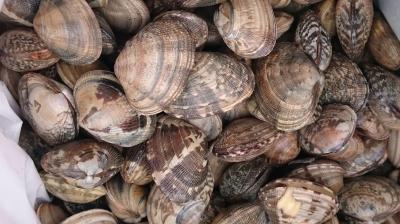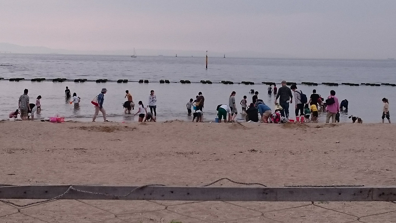 貝毒が発生中なので、拾ったアサリは係の人に返して、お土産用のアサリをもらって帰ります。