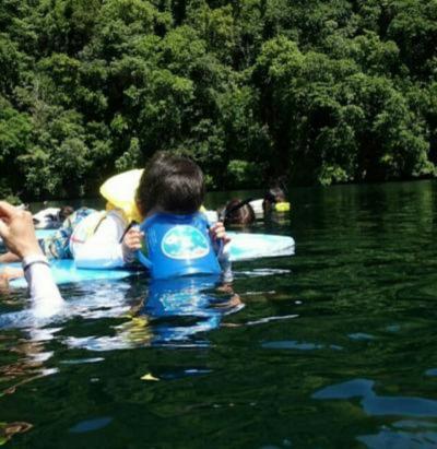 ツアー会社の方が、水に浮くマットと箱眼鏡を用意してくれていて、子どもにもよく見えたようです。楽しく観察していました。