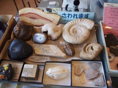 手で触っていい標本も少し置いてあります。テレビ石や方解石など。子どもはテレビ石が気に入って、色んな物を映して見てました。カンカン石は叩いてビックリ、金属のようないい音です。