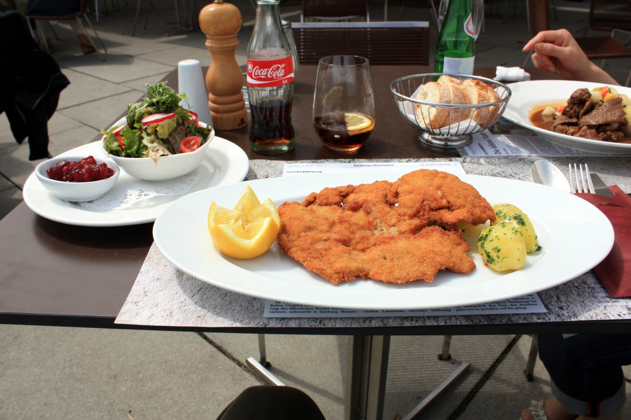 ヴィーナーシュニッツェル(サラダ付き,17.90ユーロ),ビジネスランチ(スープと牛ヒレのセット,13.9ユーロを頼みました。- 旅行時期