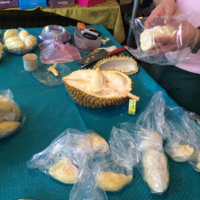 朝市でドリアンが売っていたので買ってみました初ドリアンすぐ食べるなら柔...