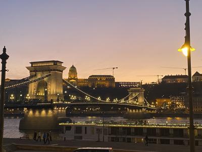 鎖橋にライトアップがされ始めた。うわーー、ものっすごくきれい。