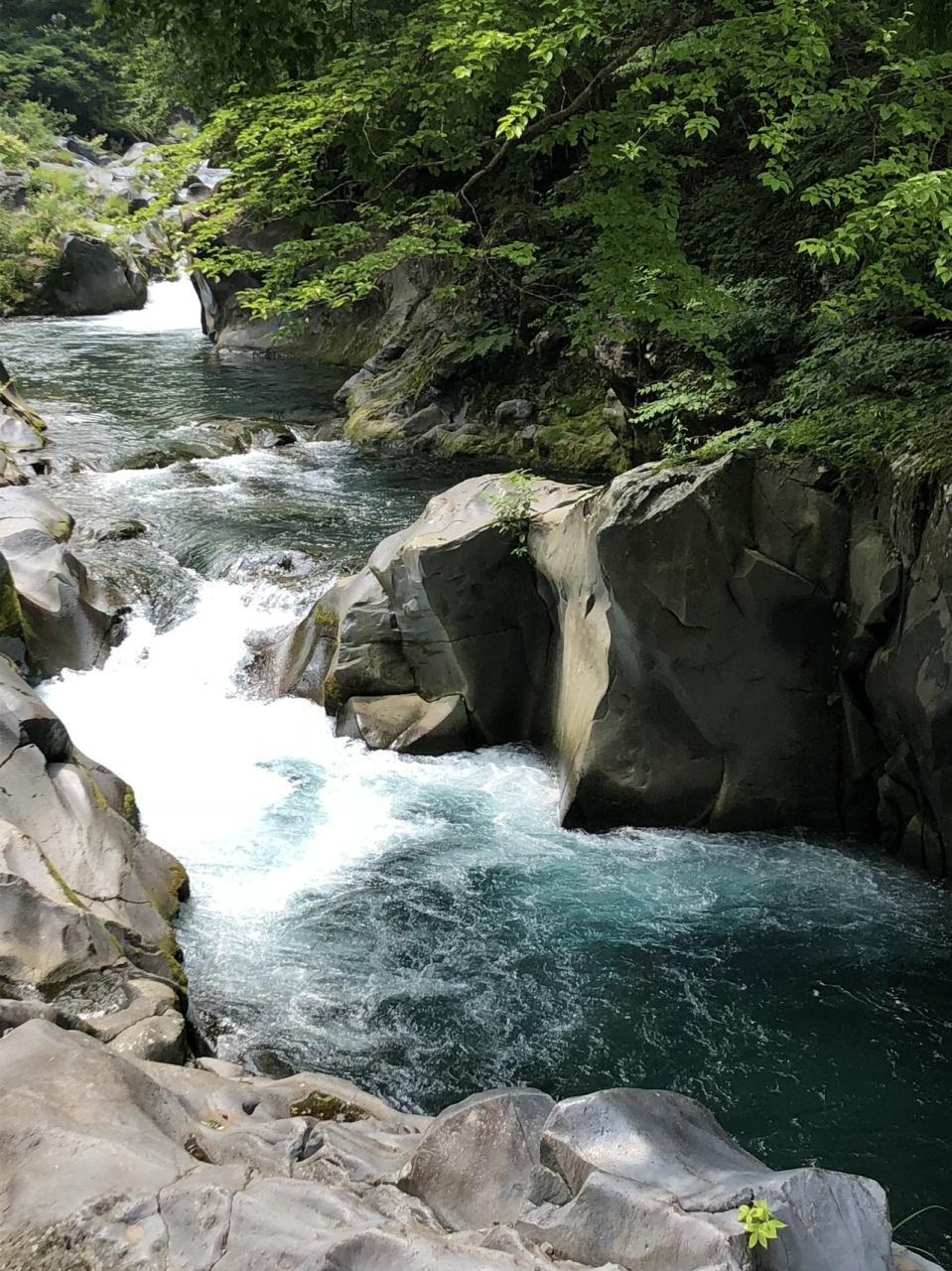 大谷川が、男体山噴火した時代の溶岩だという大きな岩と岩を侵食しながら流れ込み、渦巻くさまをみているのは飽きません。涼しいから夏はオススメです。