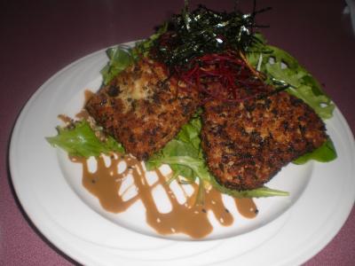 付け合わせのサラダとたくあんがさっぱりとお口直しになり、