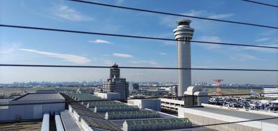 また滑走路以外に目を向けますと都心の街並みも遠くに見ることができます。