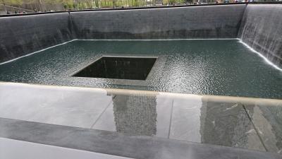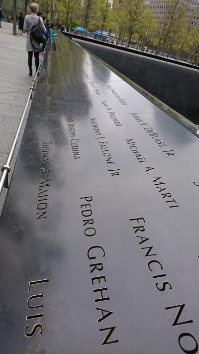 高層ビル群の間に、人工池があり、周りの囲いに犠牲者の名前が刻まれています。追悼する場所ですが、すぐ近くでイベントを開催しており、日本人としては少し違和感を感じました。日本人とアメリカ人の考え方の違いなんでしょう。
