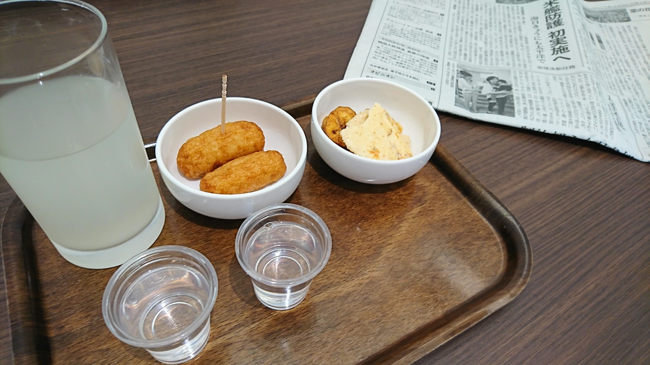 ここのラウンジでは薩摩焼酎の試飲ができるとともに、さつま揚げなども置いており、お酒のあてにすることができます。