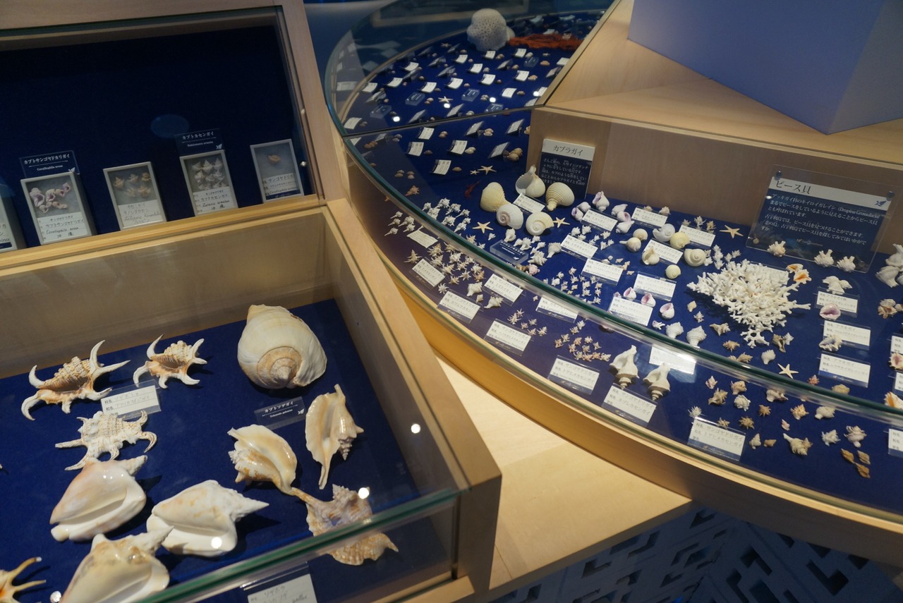 下の階には一万点以上の貝を集めたシェル・ミュージアムがあり、上階では連絡橋と海を一望できます。