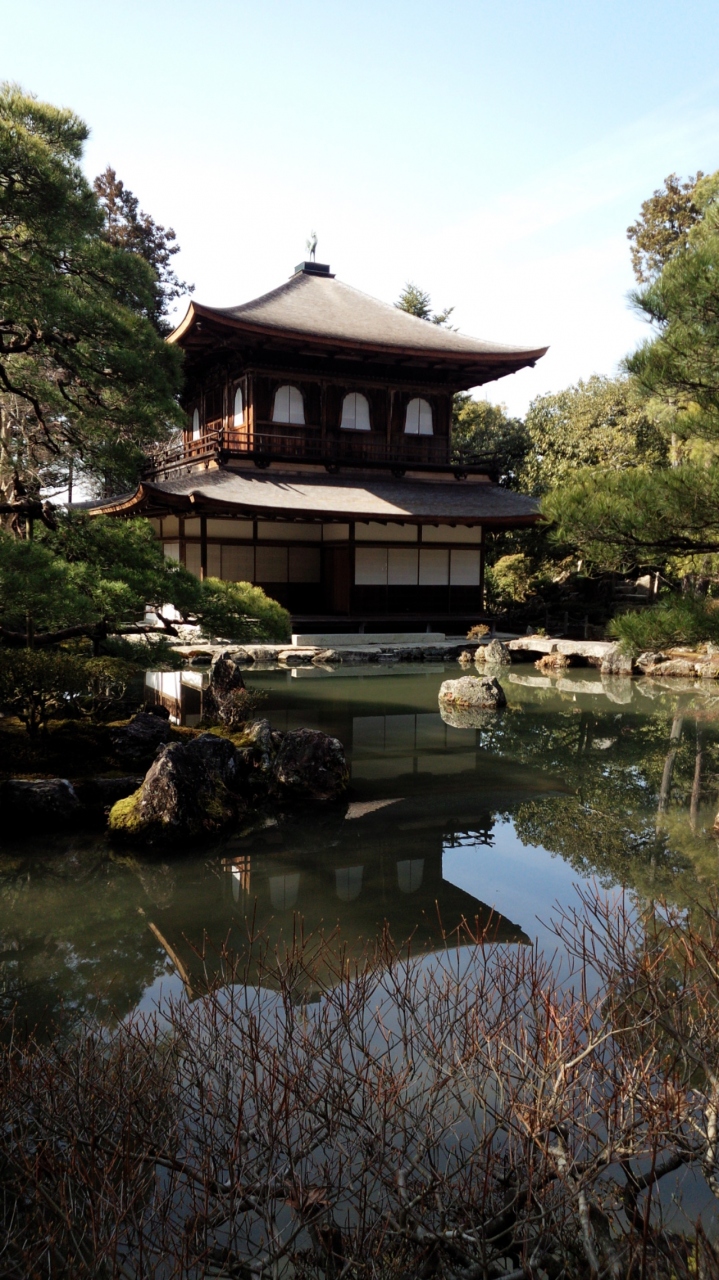 きんきらきんと輝く金閣寺と違って、銀箔は貼られていませんが、なんともほっこりさせてくれる空間です。きれいにしつらえた庭園と銀閣を上の高台から見下ろすと、とても贅沢な気持ちになります。