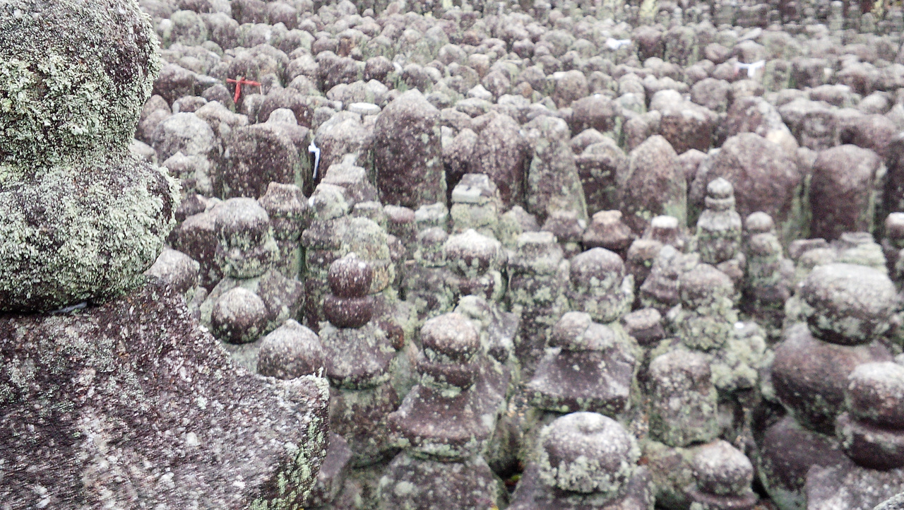渡月橋から少し距離があるせいか客はかなり少なく、また境内の中央に無数の石塔石仏が立ち並ぶ姿は他のお寺とは一線を画します。