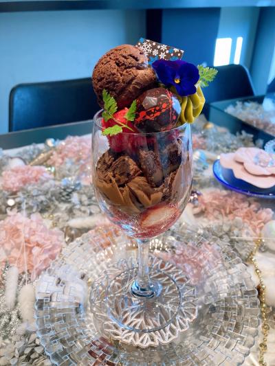 一階でチョコレートを一粒選んだら、パフェを作ってもらえます。