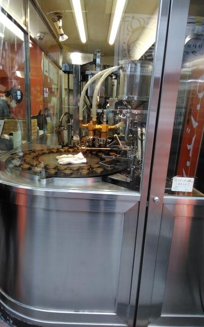 ロンドンヤさんでは、ロンドン焼きを作っているところが見えるようになっていて、興味津々と見ることができます。