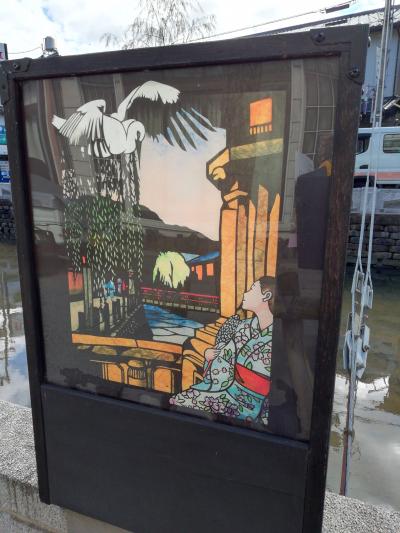 城崎温泉外湯めぐりの一つですが、一番遠くにあるので、最後の外湯めぐりになりました。鴻の湯は足を怪我したコウノトリが、傷を癒していた場所に温泉が湧でていたことから名づけられたそうです。