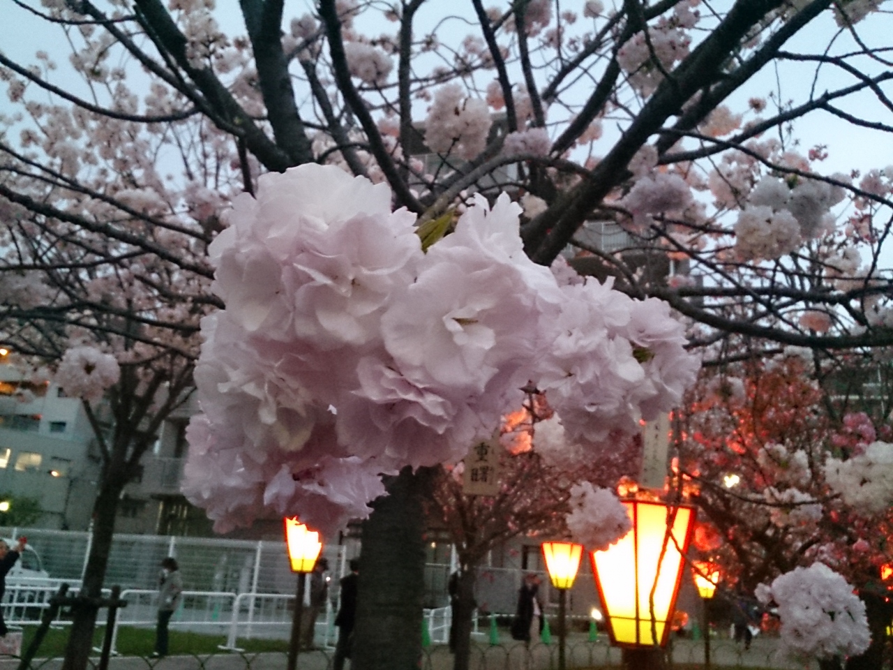 大阪造幣局の庭を天満橋方面の南門から桜宮橋方面の北門まで、一方通行で、桜のトンネルをまさに通り抜けことができるすばらしい花見名所です。八重桜主体なので、大川沿いのソメイヨシノの桜並木と開花時期が少しずれているのですが、ソメイヨシノの開花が遅い時には、大川と造幣局の桜がほぼ同時期に満開となることもあり、その時は圧巻の桜見物です。通り抜けは、混雑して、人の流れに従っての花見ですが、それでも、多くの種類の桜が見物できて、素晴らしいの一言です。