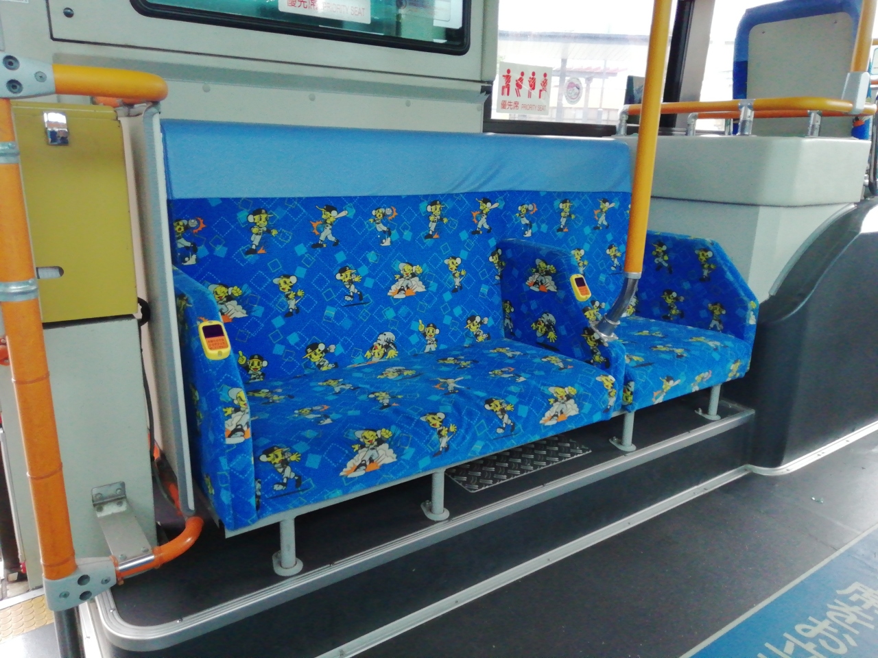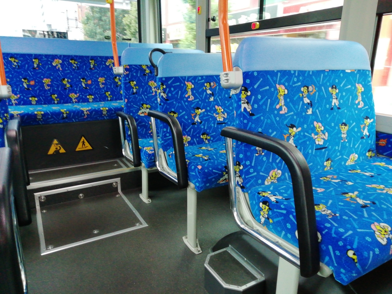 ということで、全部の路線ではありませんが、タイガース仕様の座席シートなどのバスが走っています。