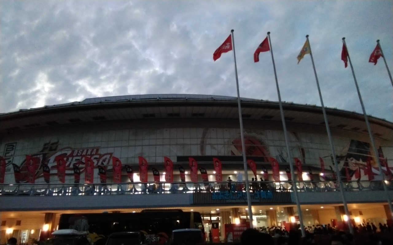 JR西九条駅から路線バスを利用したが、試合開催日ではあるが、本数が極めて少なく、バス待ちの長蛇の列にうんざり。会場についても、ズラーっと並んだ人混みで、試合開始時間に間に合わない。