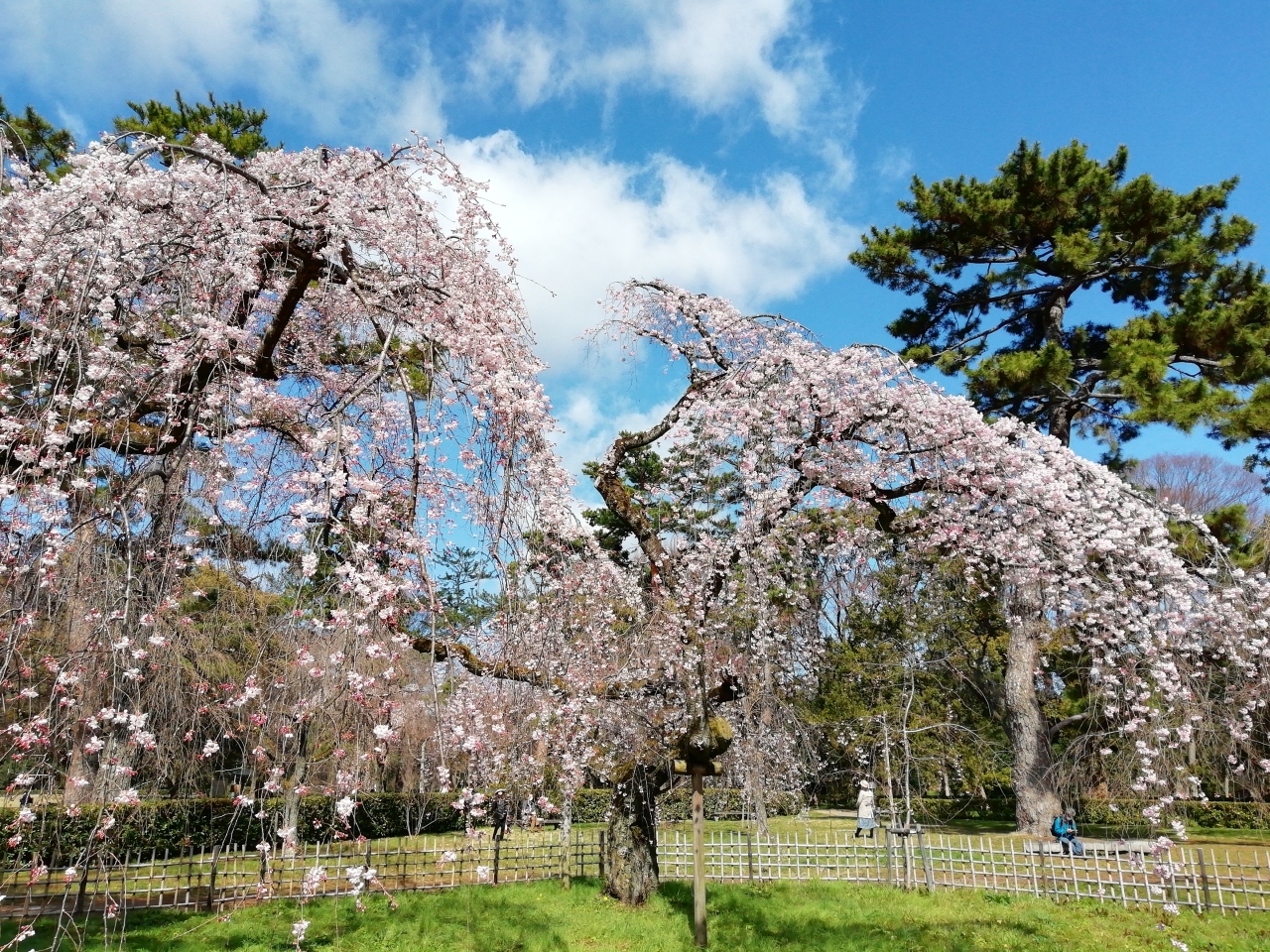 京都御苑の北側の近衛邸跡の枝垂桜、南側の出水の枝垂桜と2ケ所のサクラが見どころです。