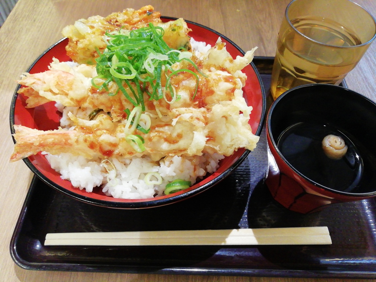 梅田の阪神百貨店スナックパークにある天丼のお店です。天丼が、ワンコインから食べられるのは、ありがたいです。海老3匹とかき揚げ1つの天丼が、500円という安さは、魅力的です。ごはんは、無料で、大盛りにしてくれるので、お腹いっぱいになり、満足しました。