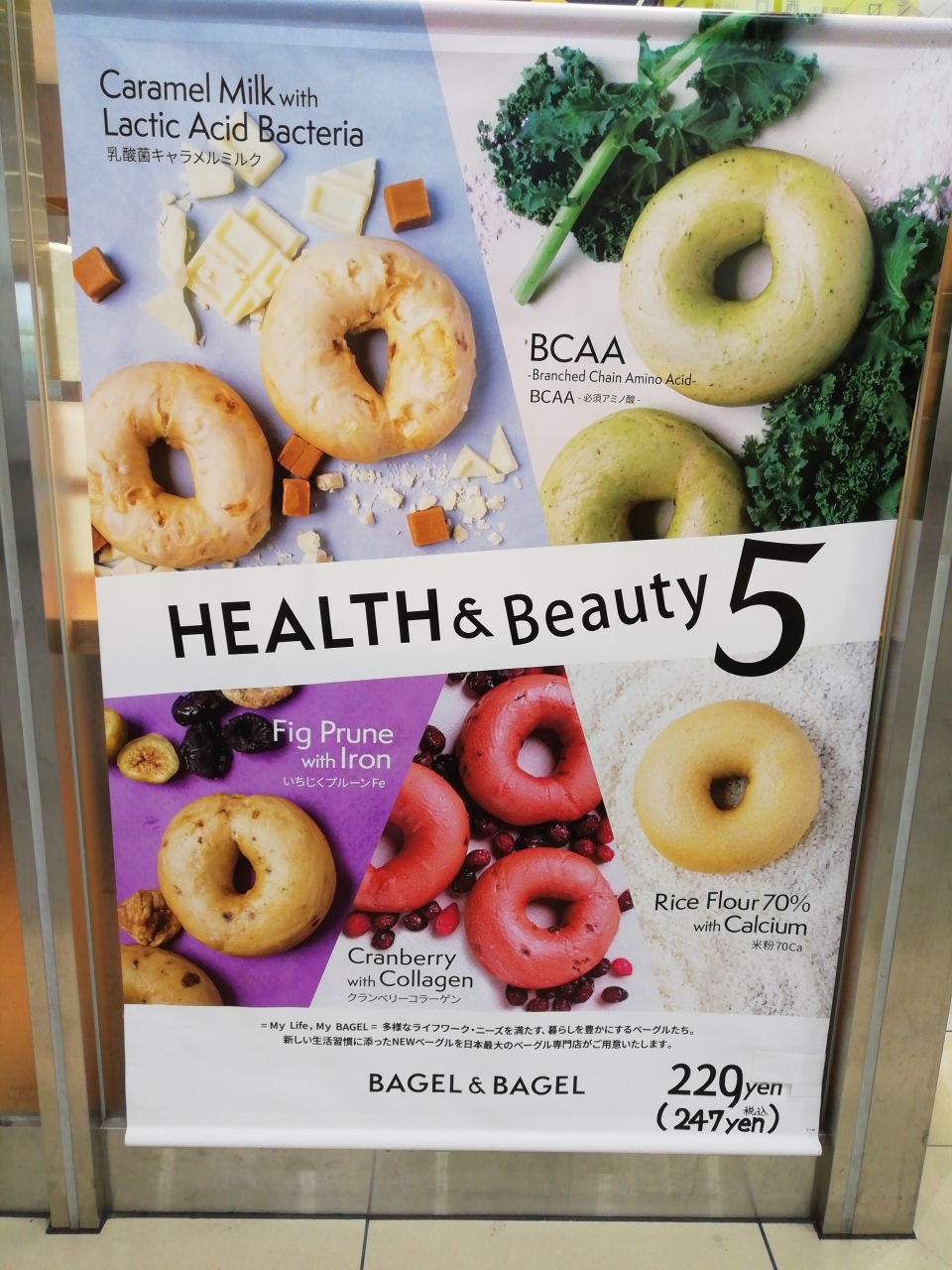 JR天王寺駅の改札をでた対面のMIOプラザ館1階にあるベーグルのお店。ベーグルとは、ニューヨーク発のかわいらしいリング状のパンです。とてもヘルシーで、プレーンのほかにも、イチジクやグランベリーなどの果実を中に入れたベーグルもあり、目移りします。