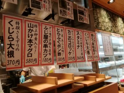 大阪・梅田の阪神百貨店スナックパークが、リニューアルして入店した立飲みの魚屋さんです。「正直に安い!旬の鮮魚を切っただけ」の看板通りですが、ちょっと、一杯をおいしい魚でという雰囲気がいいです。立ち呑み屋さんのクセにグルメ鮮魚の言葉通りの肴が出てきます。