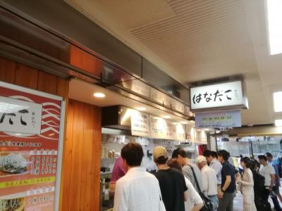 梅田・新梅田食堂街のまさに入口にあり、阪急電車とJRの間を行きかう人込みに負けじと行列の人たちで、混雑をさらに誘う立ち食いのたこ焼き屋さんがあります。狭い通路に、鈴なりになって、たこ焼きをほうばるのも一興です。大阪では、ここで立ち食いで食べるのがおつな感じなのです。安くて、美味い!