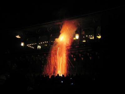 火の粉をかぶると、一年間、無病息災で過ごせるそうです。私の場所から舞台...
