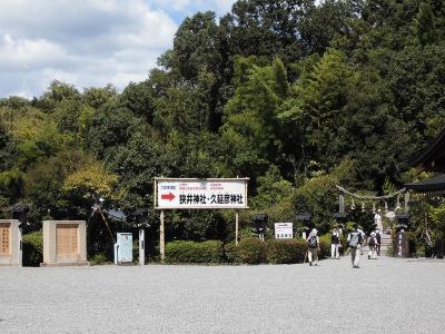 その祈祷殿から左側に目をやると、こんな看板が。「狭井(さい)神社・久延...