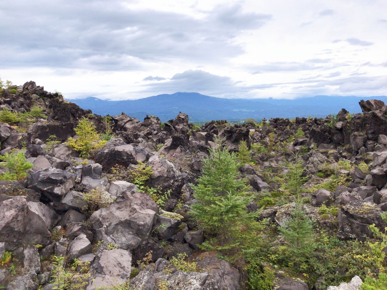 浅間山の麓の群馬県嬬恋村に位置し、1783(天明3)年に浅間山の大噴火によってできた『鬼押出し園』。