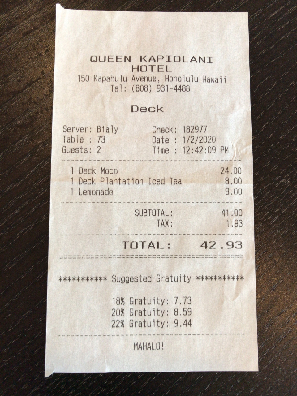 ただ6年前は$15.70、4年前は$18.84と年々値上がりしています。$20はプレートランチにしてはいいお値段だから、これ以上値上がりしてほしくないなぁ。- 旅行時期
