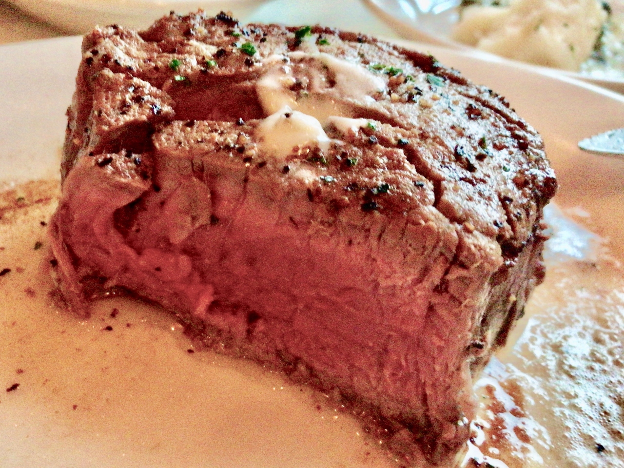 メインはプチフィレ($54.95)を選びました。プチといっても230gと女性には十分なボリュームです。ミディアムレアは中央に赤みが残る絶妙な焼き加減!脂身がほとんどないフィレは柔らかく、塩、胡椒、バターだけのシンプルな味付けで、噛むほどにお肉本来の旨味が溢れ、最高に美味しくてぺろりと完食しました♪