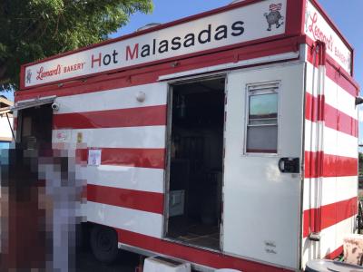 『ワイケレ プレミアム アウトレット』の目の前にあるショッピングセンターの駐車場で『レナーズ ベーカリー』のマラサダワゴンが営業しています。場所は駐車場一番奥の『オールドネイビー』の隣で、赤と白のボーダー柄で見つけやすいです。