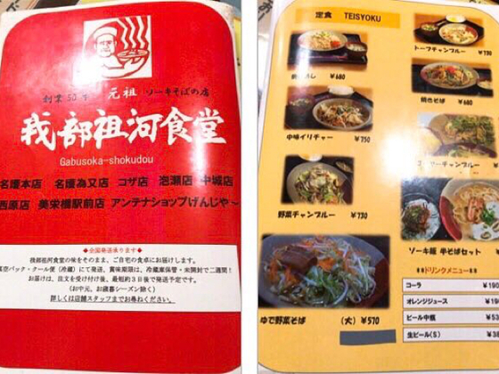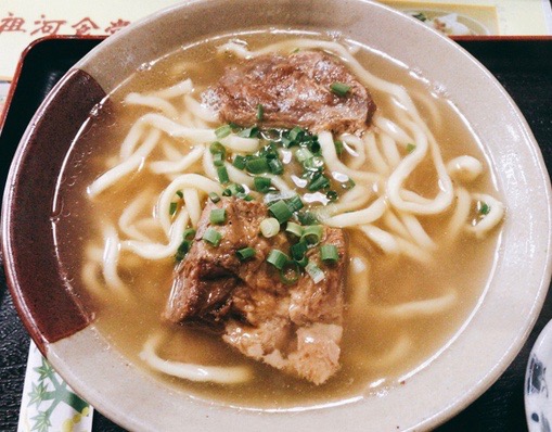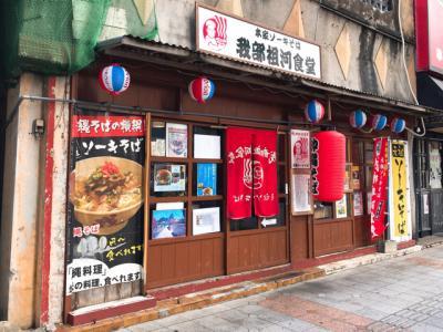 沖縄そばの上に豚の味付けアバラ肉をのせてお客さんに初めて提供した元祖ソーキそば『我部祖河食堂』の美栄橋駅前店。