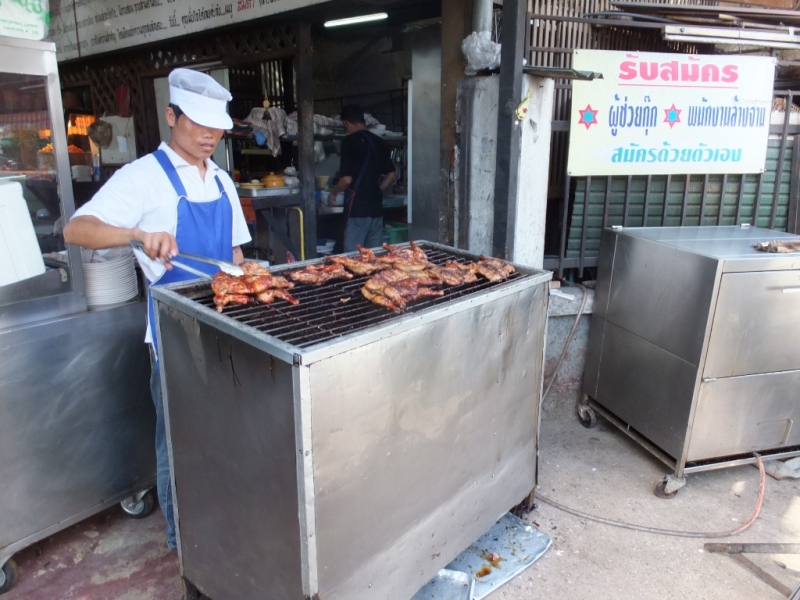 - 店先で焼くガイヤーン、店内を貫く木があったり、良い感じでした。