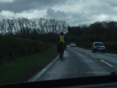 「牧場に寄り道」幹線道路に戻り走って行くと馬が何頭も歩いているのに出会...