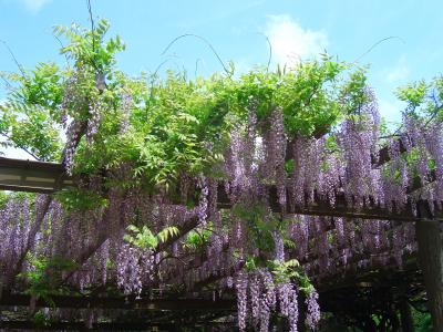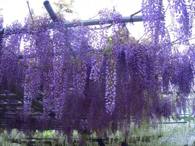 才の神の藤は大きな藤棚で、花房は山藤ですので長くはありません。しかし色は濃くて美しい藤です。- 旅行時期
