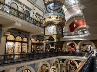Sydneyに来たら必ず寄るであろうショッピングビル。地上3階地下1階。スタンドグラスや釣鐘式の時計が美しいビルです。