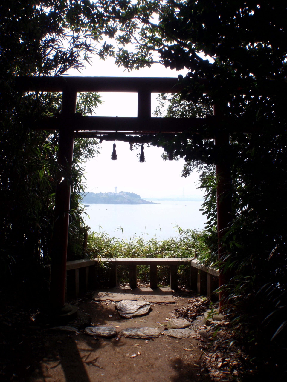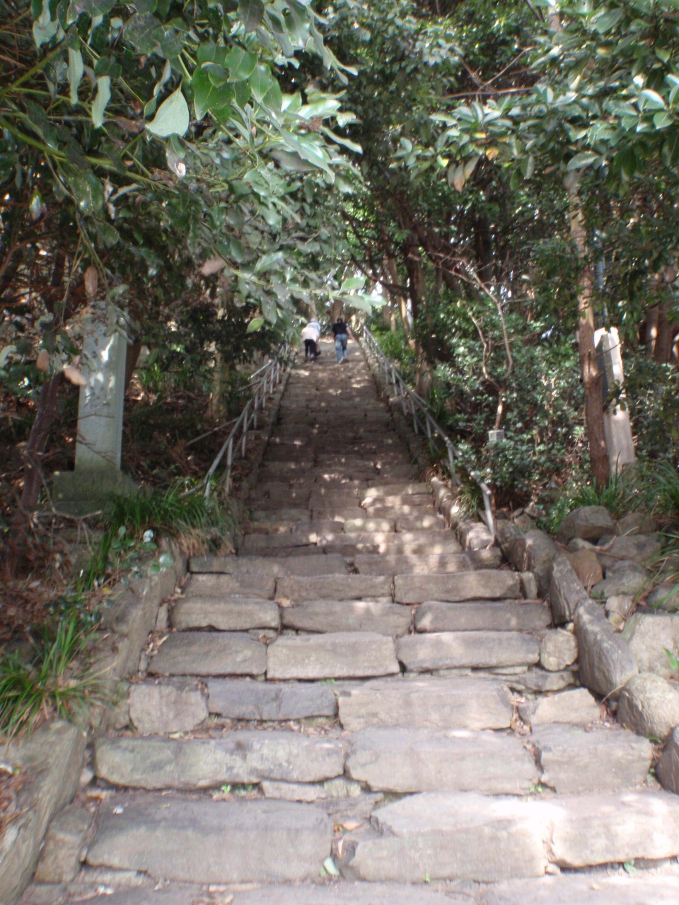 橋を渡って鳥居をくぐり、階段を上ると道が二手に分かれており、